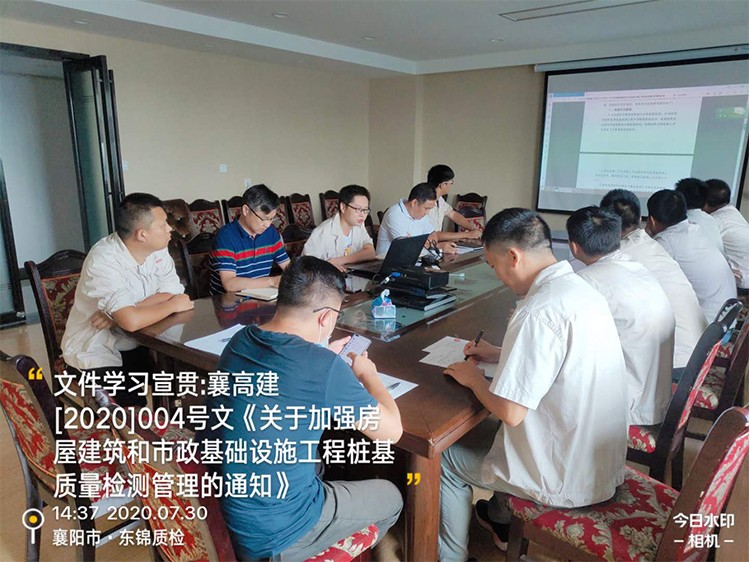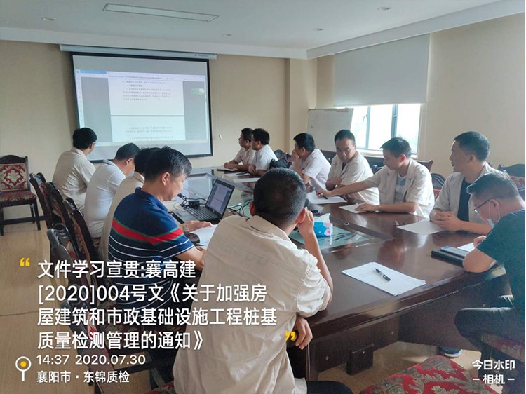 閱讀次數(shù):1291 發(fā)布時間:2020年07月31日2020年7月30 日,公司領(lǐng)導(dǎo)組織學(xué)習(xí)宣貫“襄高建{2020}004號文《關(guān)于加強房屋建筑和市政基礎(chǔ)設(shè)施工程樁基質(zhì)量檢測管理的通知》”參會人員主要為公司地基基礎(chǔ)室同事及相關(guān)經(jīng)營部人員。