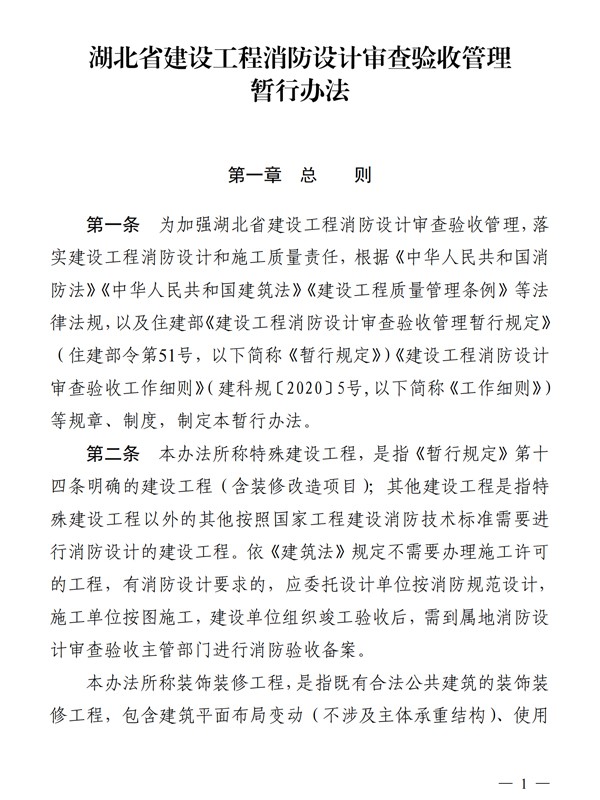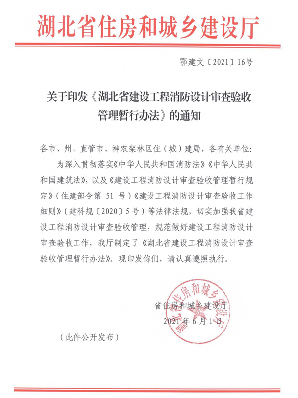 關于印發(fā)《湖北省建設工程消防設計審查驗收管理暫行辦法》的通知